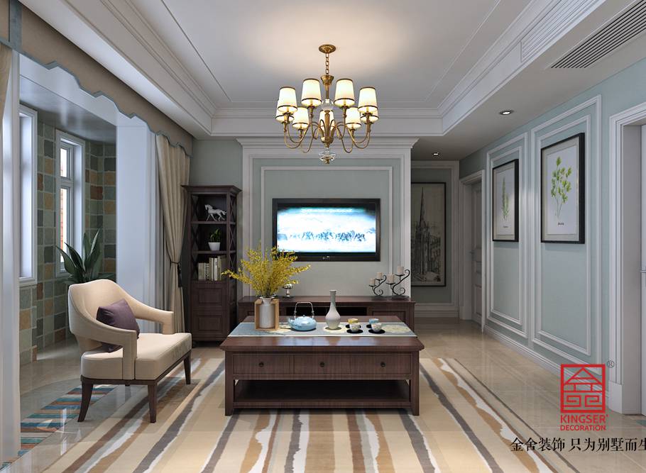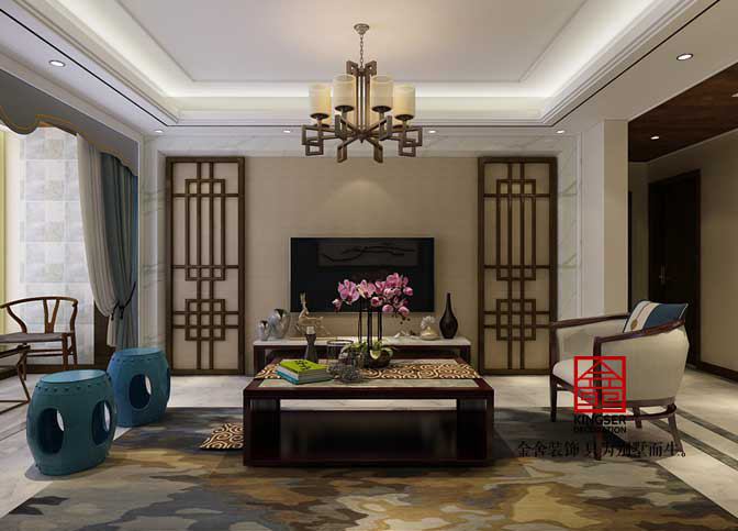麗景藍灣114平米現(xiàn)代中式裝修效果圖