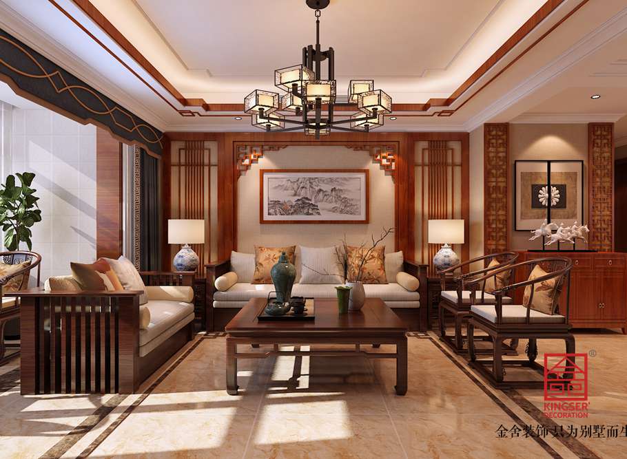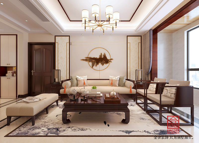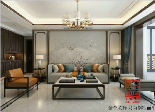 融創(chuàng)中心125平米新中式風格裝修效果圖