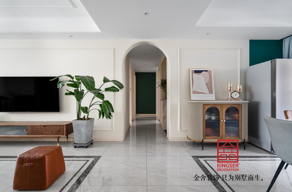 我們希望在設(shè)計每一個空間時,不僅要讓空間本身充滿想像,同時營造出的氛圍能感染周圍的每一個人。本案作品將復(fù)古與摩登兩種元素結(jié)合,不僅表現(xiàn)在硬裝,更多是通過軟裝的造型及色彩來表達對精致生活的態(tài)度。