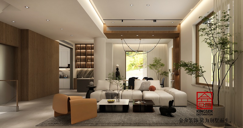 西山林語(yǔ)365平別墅裝修詫寂風(fēng)格效果圖