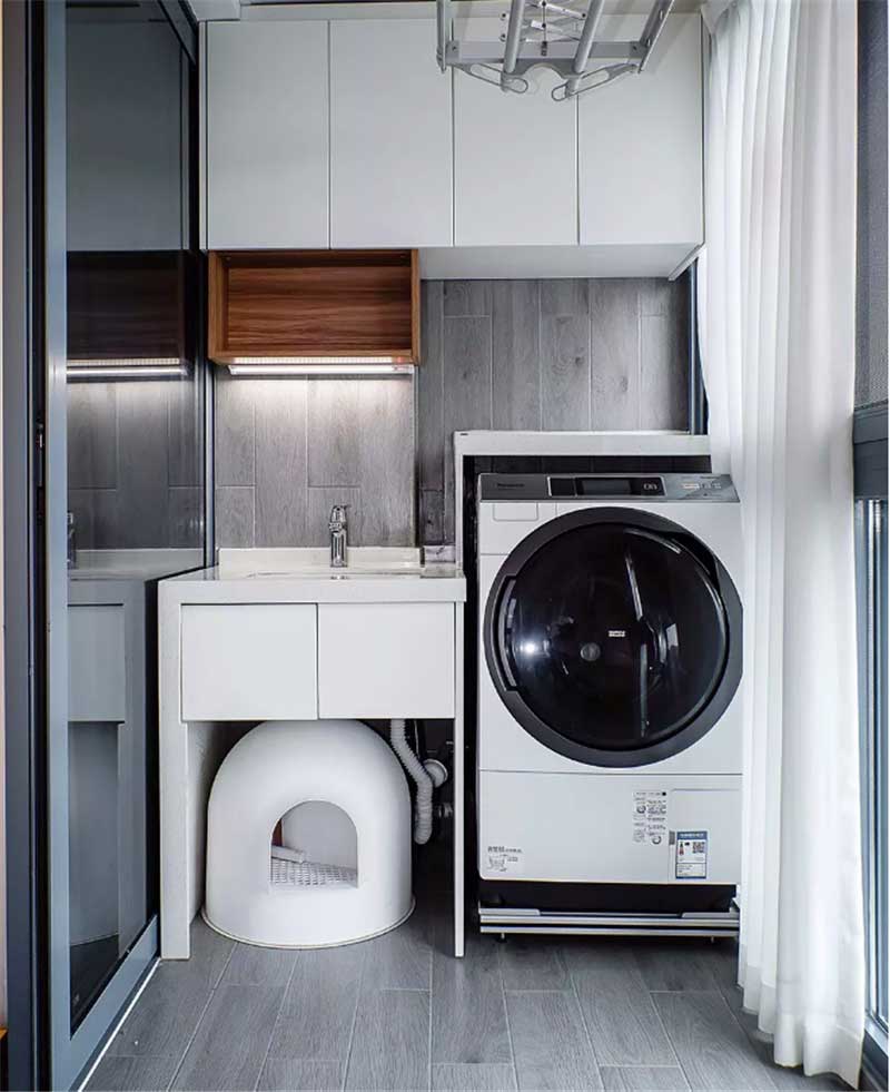 陽臺單獨突兀的放置洗衣機或多或少都會影響美觀性,但是如果把定制的洗衣柜與洗衣機合理的安裝在陽臺空間,裝修的效果會更出彩,家具風(fēng)格更加的統(tǒng)一,陽臺在兼具實用性的同時也更加的美觀。