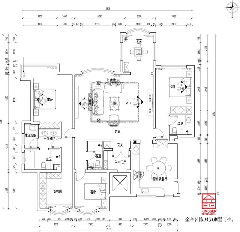 3、次衛(wèi)生間的墻體統(tǒng)一向下挪,使淋浴等空間達(dá)到最大舒適化。