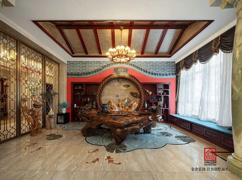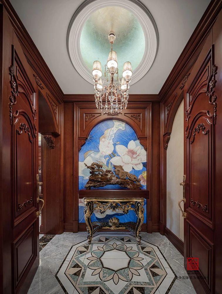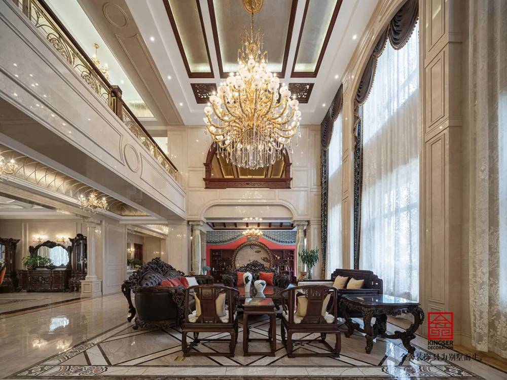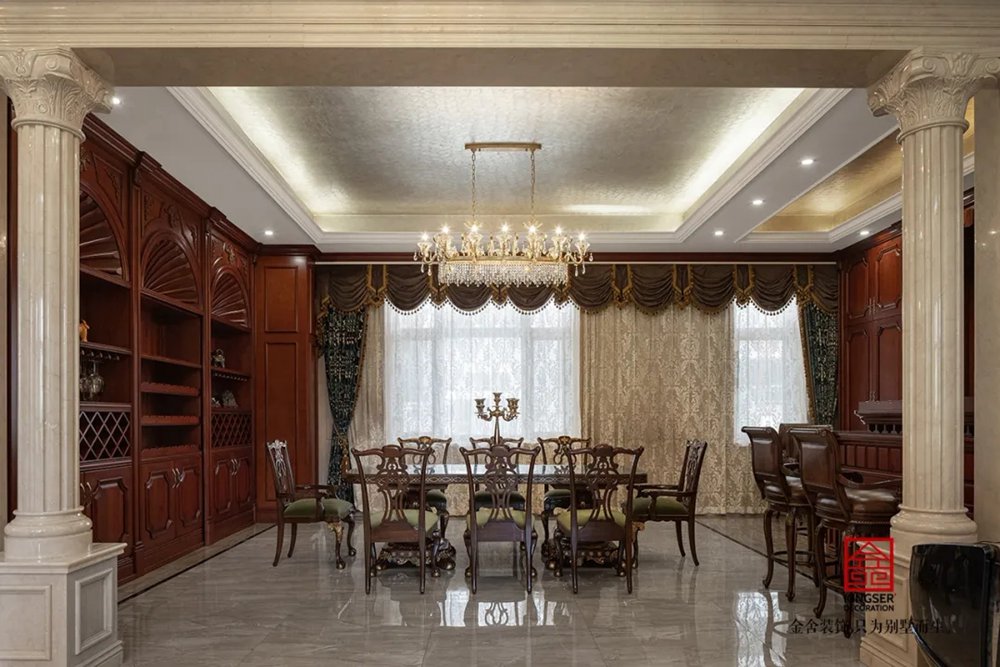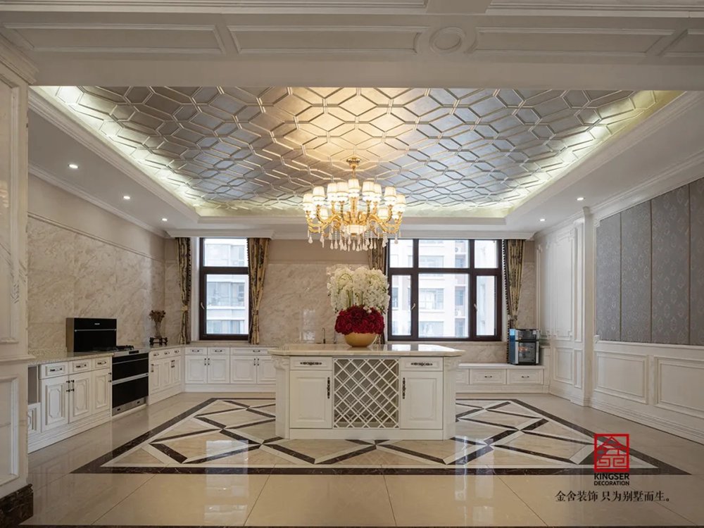 此案例為石家莊金舍裝飾-無(wú)極御瓏華府2400平米別墅歐式風(fēng)格裝修實(shí)景。御瓏華府“中西合璧”這是一套集“土建+硬裝+軟裝+庭院”一體的全案設(shè)計(jì),占地東西70米,南北50米,整個(gè)結(jié)構(gòu)坐落于小區(qū)的核心位置,打開家門,先是私有的庭院生活,再而迎面就是小區(qū)的綠化水系,視野開闊,一覽全景。方案設(shè)計(jì)為“中西合璧”風(fēng)。浪漫的歐式古典風(fēng)融入東方設(shè)計(jì)元素,嶄新的文化底蘊(yùn)得以傳承,既有歐式的富貴典雅又有中式的文化底蘊(yùn),二者巧妙應(yīng)用,提升整個(gè)空間氣質(zhì)。