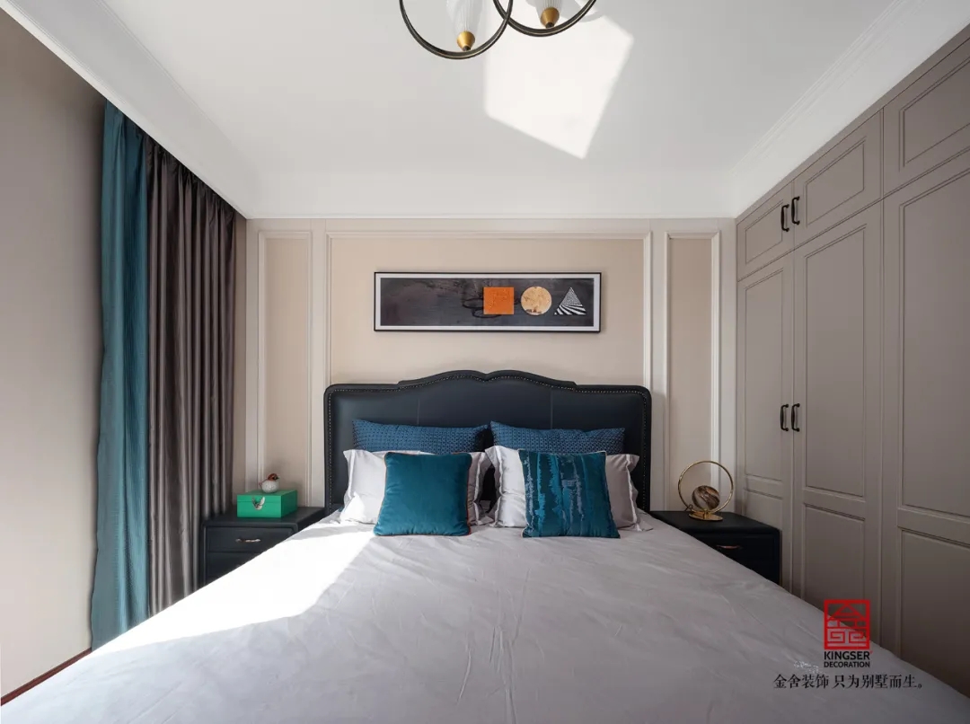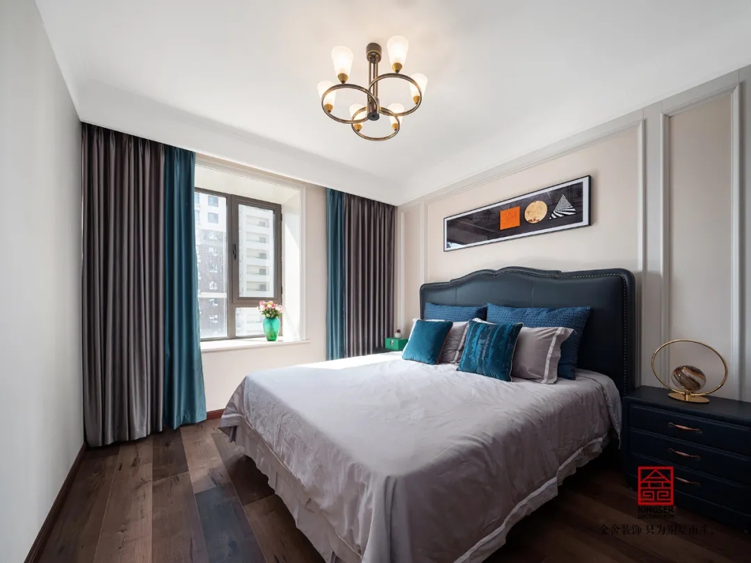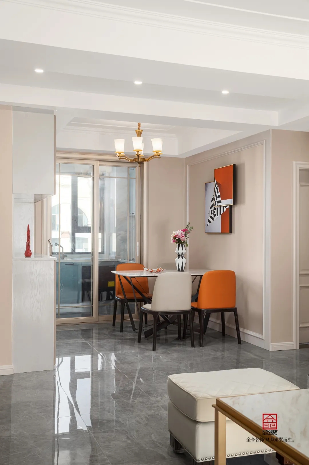 此案例為石家莊金舍裝飾-維多利亞三期120平米美式裝修實景。凡是設(shè)計,皆涉及色彩,或許濃烈而充滿激情,或許素淡而沉靜自若,陸離斑駁間,演繹出城市的性格。色彩里所蘊藏的豐富想象力,則渲染著家居生活的底色。