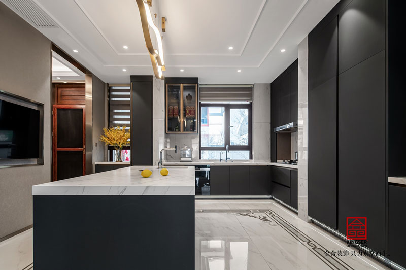 巨大的島臺(tái)豎立在廚房的正中央,空間的半開敞式空間,滿足了一切的功能需要。