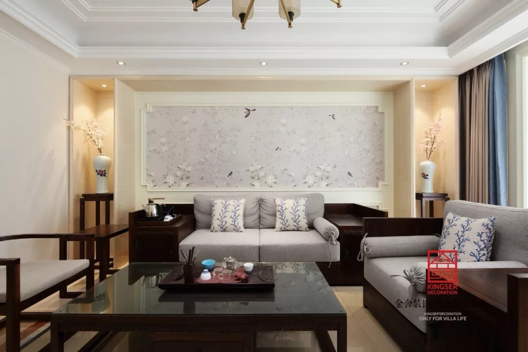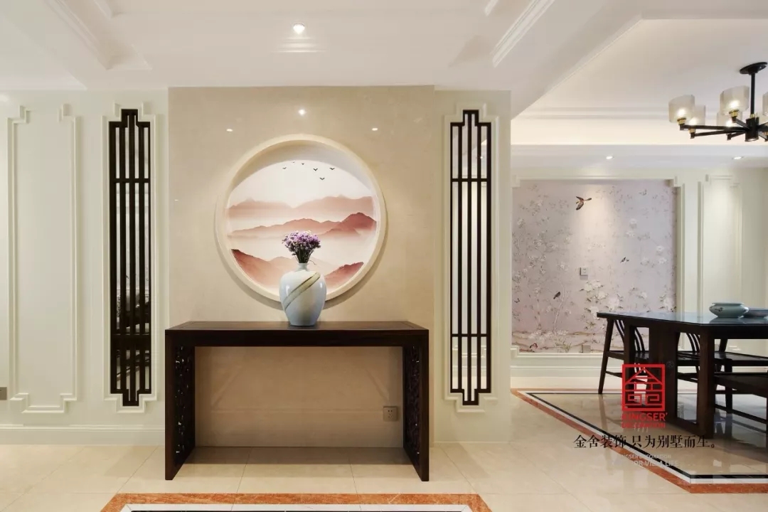 此案例為石家莊金舍裝飾-冀興尊園150平米新中式裝修效果圖。傳統(tǒng)的中式風格裝修設計古雅、情節(jié)濃厚,而新中式的設計是將中式經典中融入更多新的元素,巧妙的結合而成整個居室的裝修效果,讓空間內彰顯典雅韻味而又不失時尚氣息。多種元素的共存,多種風格的兼容,在風格選擇上不拘一格,選取不同觸覺、視覺交織融合,存其風骨,取其神韻,典雅而又不乏時代的積淀。