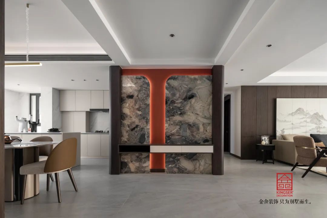 簡化和概括傳統古典中式的形式,采用古為今用、中西合璧的設計手法,打破了傳統中式可能帶來的沉悶和厚重感,從而給空間注入了時尚現代的氣息。