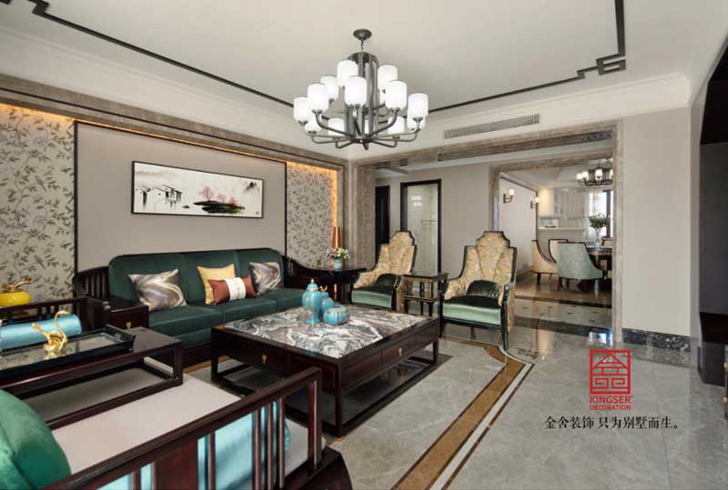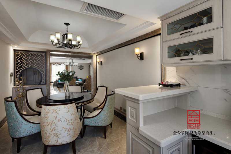 設(shè)計(jì)說明:此案例為石家莊金舍裝飾-珺合府180平米新中式風(fēng)格裝修實(shí)景中式風(fēng)格源遠(yuǎn)流長,木質(zhì)紋理家具加上寫意白描繪畫融合一體,家居生活的方方面面都與中式風(fēng)格的家裝緊密聯(lián)系而又互相獨(dú)立,讓生活的味道融入到家居之中。