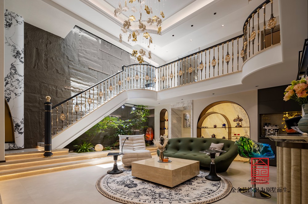 負(fù)二的會(huì)客空間充滿自然地氣息,樓梯下方自然水系布景,森系空間倍感親切,在此小坐,聽流水輕響、聞草木清香,仿佛暫別喧囂,讓人不自覺卸下疲憊,享受這份與自然相擁的松弛。