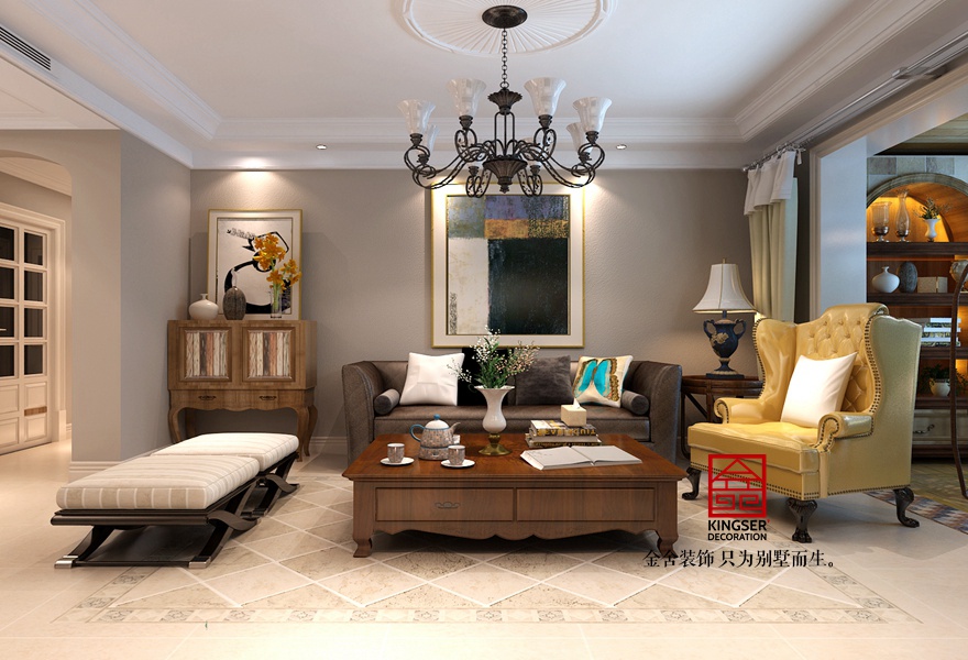 本案以高級灰色調(diào)為主,大面積運用了木布結(jié)合的家具,空間彌漫著回歸自然的氣息,體現(xiàn)了主人追求精致生活的同時,也不乏內(nèi)斂的氣質(zhì)。入戶客廳的磨弧埡口,讓人很舒服又有眼前一亮的感覺,也使整個空間多了一絲靈動,頗有活潑的意味,也與走廊盡頭的玄關(guān)遙相呼應(yīng),有著密不可分的關(guān)系。正是這種灰色系的應(yīng)用配以地面暖色的精美拼花地磚,空間很好的劃分,又讓整個空間對比鮮明,瞬間變得圣潔起來。