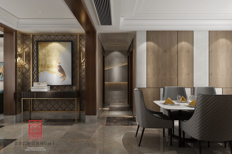 石家莊金舍裝飾-德賢公館160平米現(xiàn)代風(fēng)格裝修效果圖。是圍繞現(xiàn)代為主題,再加上美式的設(shè)計(jì)元素在里面。相互結(jié)合,相交融。以簡(jiǎn)潔明快的設(shè)計(jì)風(fēng)格為主調(diào),簡(jiǎn)潔和實(shí)用是現(xiàn)代簡(jiǎn)約風(fēng)格的基本特點(diǎn)。簡(jiǎn)約風(fēng)格已經(jīng)大行其道幾年了,仍然保持很猛的勢(shì)頭,這是因?yàn)槿藗冄b修時(shí)總希望在經(jīng)濟(jì)、實(shí)用、舒適的同時(shí),體現(xiàn)一定的文化品味。而簡(jiǎn)約風(fēng)格不僅注重居室的實(shí)用性,而且還體現(xiàn)出了現(xiàn)代社會(huì)生活的精致與個(gè)性,符合現(xiàn)代人的生活品位。全面考慮,在總體布局上方面盡量滿(mǎn)足業(yè)主生活的需求,客廳的現(xiàn)代簡(jiǎn)約和臥室的美式溫馨相結(jié)合,融會(huì)貫通。更體現(xiàn)現(xiàn)代簡(jiǎn)約之感。創(chuàng)造一個(gè)溫馨,健康的家庭環(huán)境。