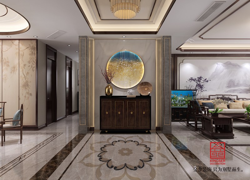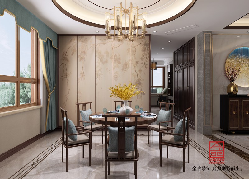設(shè)計(jì)說明:此案為石家莊金舍裝飾-榮盛華府200平米中式風(fēng)格裝修效果圖。本案采用了現(xiàn)代的設(shè)計(jì)語言來表達(dá)東方的意境,用新中式風(fēng)格打造出蘊(yùn)含禪意的家居空間,隱去傳統(tǒng)中式繁雜的設(shè)計(jì)表現(xiàn),用減法來表達(dá)東方元素。