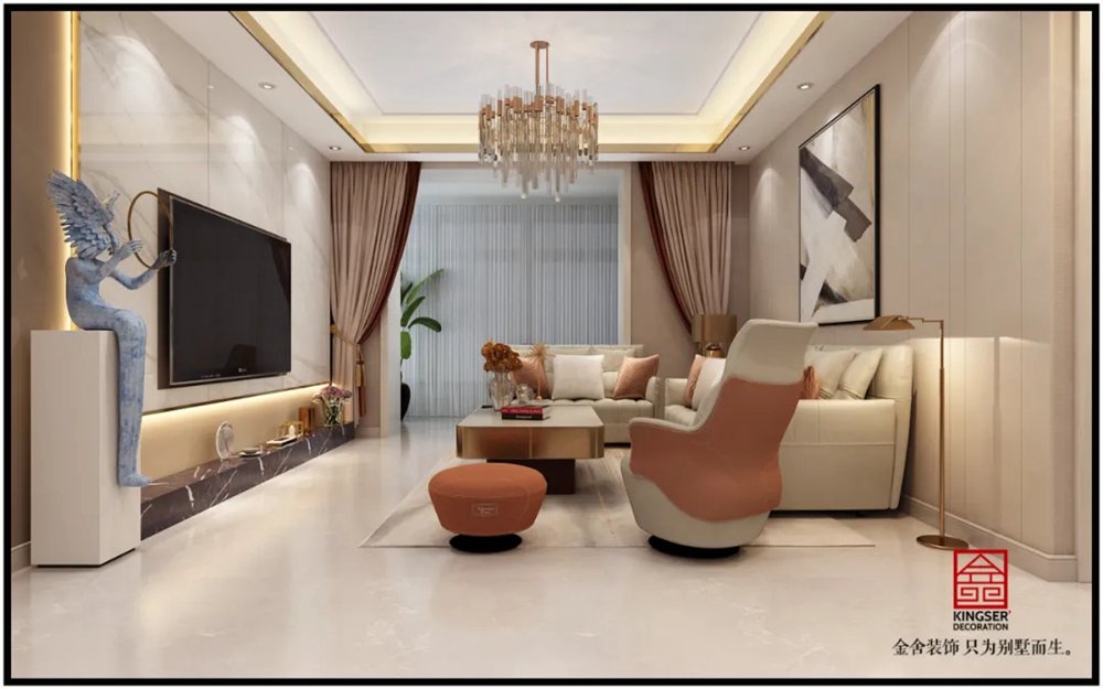此案例為石家莊金舍裝飾-瀚林甲第166平米輕奢風格裝修案例。一縷和煦的陽光,照亮你的家。木色與大理石,不僅能襯托陽光的溫暖,在視覺上還有較強的延展性,相同色系的墻壁將整個家居空間合為一個統(tǒng)一整體,帶給居住者不一樣的視覺享受。