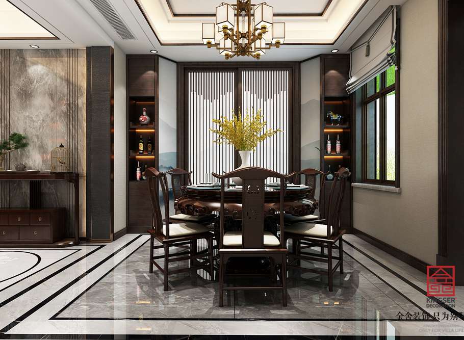 石家莊金舍裝飾-榮盛華府185平米新中式風格裝修效果圖。定位為新中式禪意風格,本方案的設計哲學是給人一種靜謐、平和、舒緩的感覺,新中式設計追求的是一種清新高雅的格調(diào),注重文化積淀,講究雅致意境。以簡樸、舒適、隨意的特點給人很強的吸引力,搭配著新中式的紅木家具,為生活營造出一個寧靜、安逸、平和的風格。既繼承了傳統(tǒng)中式風格的固有理念和元素,又有現(xiàn)代設計理念的創(chuàng)新以及現(xiàn)代工藝的運用。當走進禪意新中式設計的房間,仿若走進了另外一種生活狀態(tài)。新中式的圈椅沙發(fā),簡單大方的茶幾。讓人好不愜意。這種表現(xiàn)能夠完整地體現(xiàn)出居住人追求品質(zhì)、典雅生活,視生活為藝術的人生態(tài)度。
