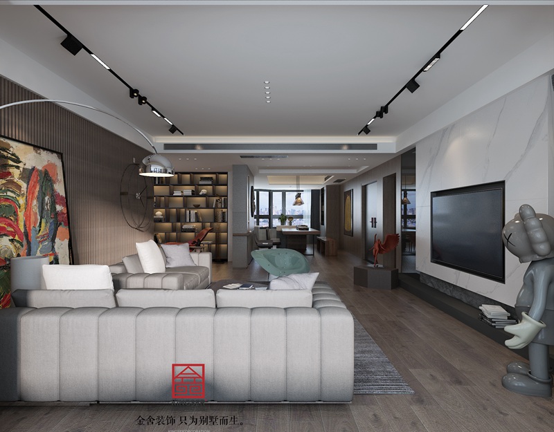 設計說明:此案例為石家莊金舍裝飾-榮盛華府190平米現(xiàn)代極簡風格裝修效果圖?,F(xiàn)代人面臨著城市的喧囂和污染,激烈的競爭壓力,還有忙碌的工作和緊張的生活。因而更加向往清新自然、隨意輕松的居室環(huán)境。越來越多的都市人開始摒棄繁縟豪華的裝修,力求擁有一種自然簡約的居室空間。少即是多,以寧缺勿濫為精髓,合理的簡化居室,從簡單舒適中體現(xiàn)生活的精致,體塊構(gòu)成把所有的內(nèi)容糅合在一起,又讓喧鬧中有了主線,有了寧靜,給人以心靈的休憩。