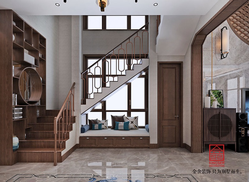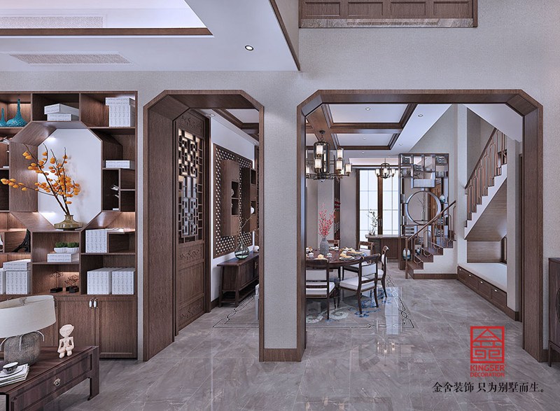 設計師倡導「詩性東方」獨特語境下的設計表達,圍繞“秀雅詩性”、“高貴平和”、“國際東方”三大議題鋪陳開來,探索東方哲思啟迪下材料和光影演繹的宜居實踐,以空間寫詩。分而不隔,互相滲透,增加了層次的虛實映襯和光影引入,使得庭院更符合人的日常生活尺度,家庭成員在這里相互交流,活動動線也更為舒展。
