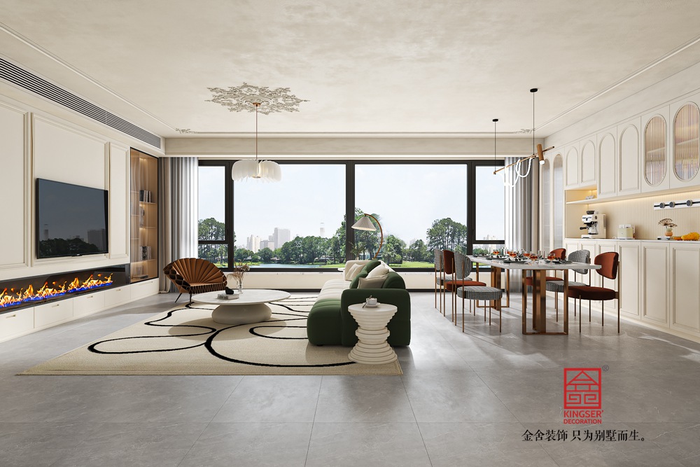 整個(gè)客廳空間的設(shè)計(jì)注重簡(jiǎn)約而不簡(jiǎn)單,既體現(xiàn)了現(xiàn)代風(fēng)格的時(shí)尚與大氣,又融入了溫馨與舒適的生活氛圍。在這里,居住者可以放松身心,享受與家人、朋友相聚的美好時(shí)光。